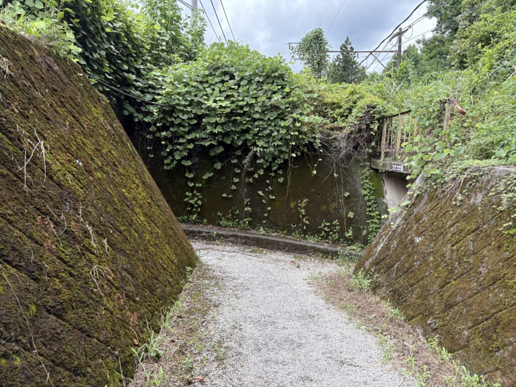 登山コースの入り口まで来た。しかしここで一緒に来ていた父親が疲労でギブアップ。僕も、一人で登山するのは怖かったので、断念。代わりに、変な廃道らしき道を見つけたので進んでみる。