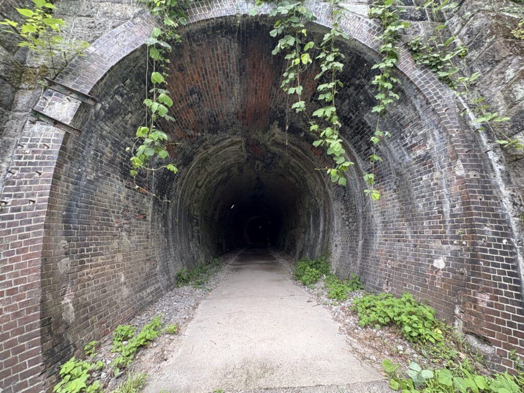 隧道が見えてきた。横川駅からめがね橋を目指すハイキングコースには、多くの隧道がある。
